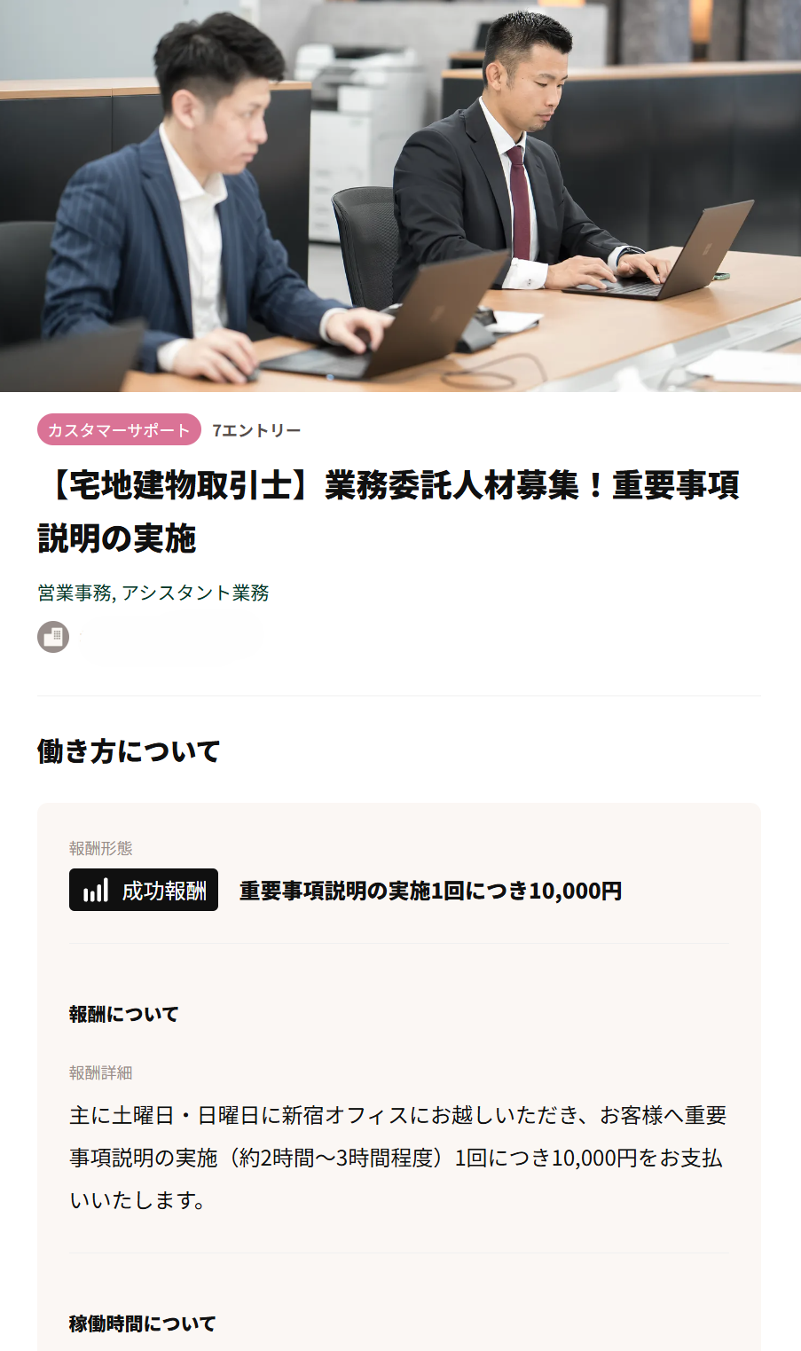 要事項説明の実施を業務委託で行う宅地建物取引士を募集されている広告です。